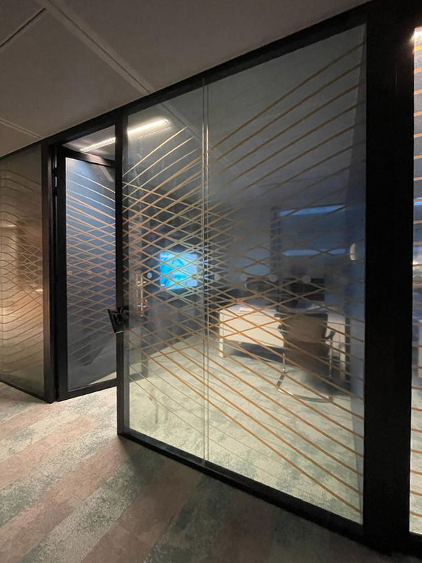 Cette solution est parfaite pour préserver la luminosité et l’intimité à l’intérieur du local, tout en assurant une communication visuelle efficace depuis l’extérieur.
